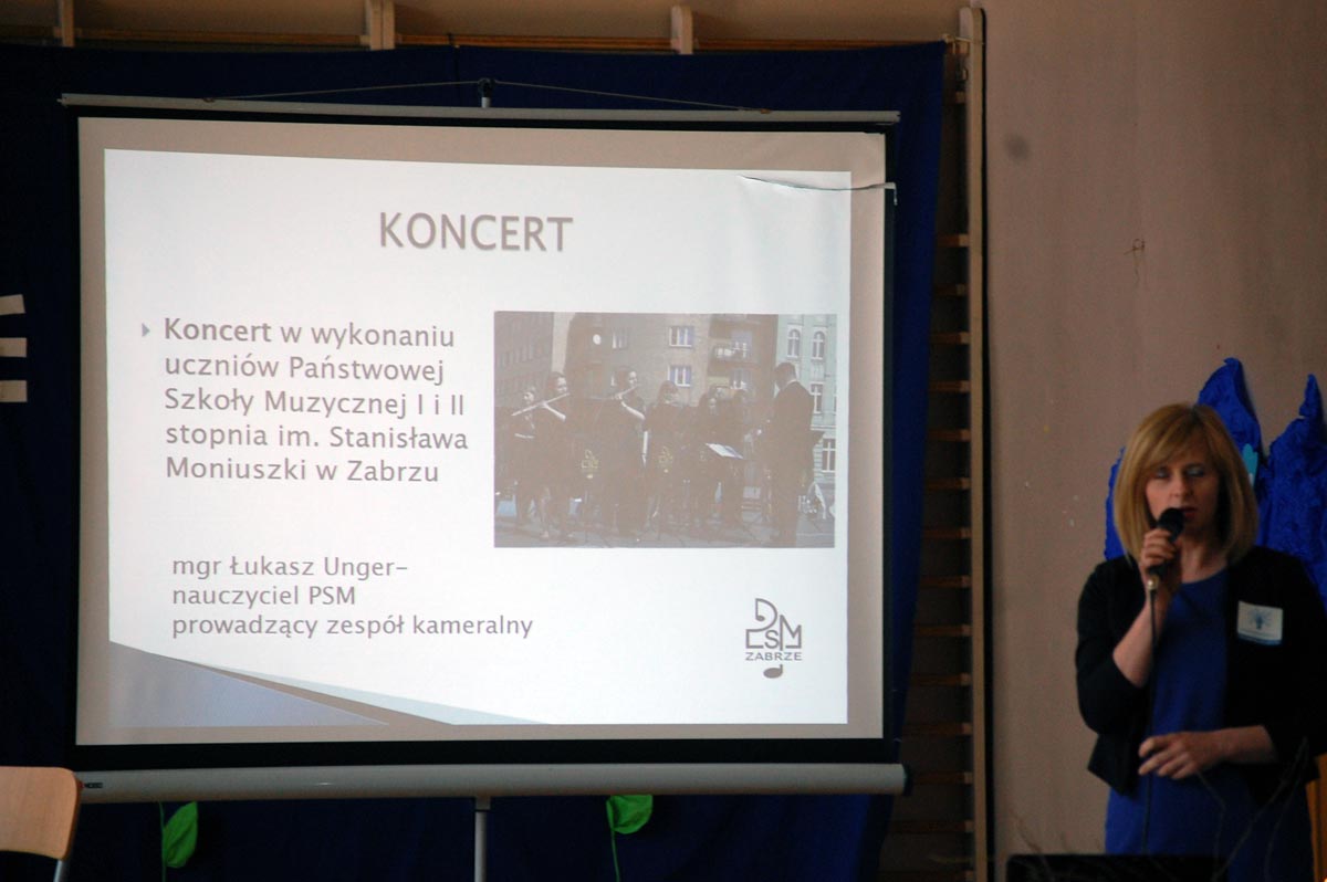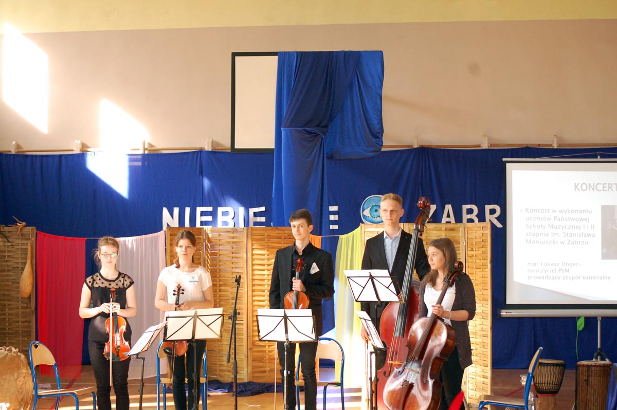 Muzyka w znakomitym wykonaniu młodych zdolnych ludzi, dzięki wieloletniej współpracy z panią dyrektor Państwowej Szkoły Muzycznej I i II stopnia im. Stanisława Moniuszki w Zabrzu panią mgr Małgorzatą Tyszer oraz wspaniałym gronem pedagogicznym . Dziękujemy za ogromne wsparcie i uświetnienie naszych obchodów. 12 maja odbędzie się koncert charytatywny w Państwowej Szkole Muzycznej będzie to uwieńczenie Kampanii "Niebieskie Zabrze".