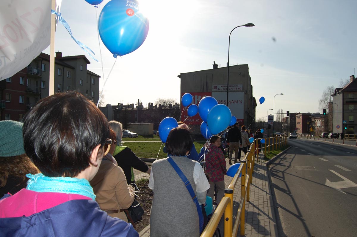 Przejście ulicami miasta Niebieskiego Korowodu - tak ogromnej grupy ludzi z transparentami i mnóstwem niebieskich balonów to musi zrobić wrażenie... Po co oni tak idą ? Dlaczego NIEBIESKI? O co chodzi? Właśnie o to: Zobacz, zainteresuj się zastanów przez chwilę czy nigdy nie oceniłeś, nie spojrzałeś w sklepie z dezaprobatą na czyjeś zachowanie, nie pomyślałeś "ale sobie dziecko wychowała" WŁAŚNIE DLATEGO JEST NIEBIESKIE ZABRZE - działamy w naszym mieście ale chcemy dotrzeć do WSZYSTKICH. Uświadomić ale również pomóc, pokazujemy, iż są miejsca gdzie MOŻNA UZYSKAĆ POMOC.