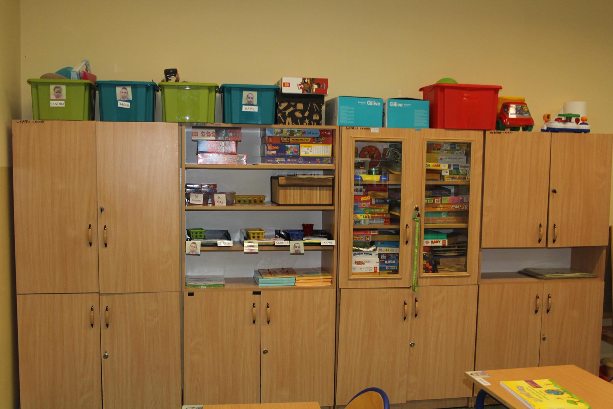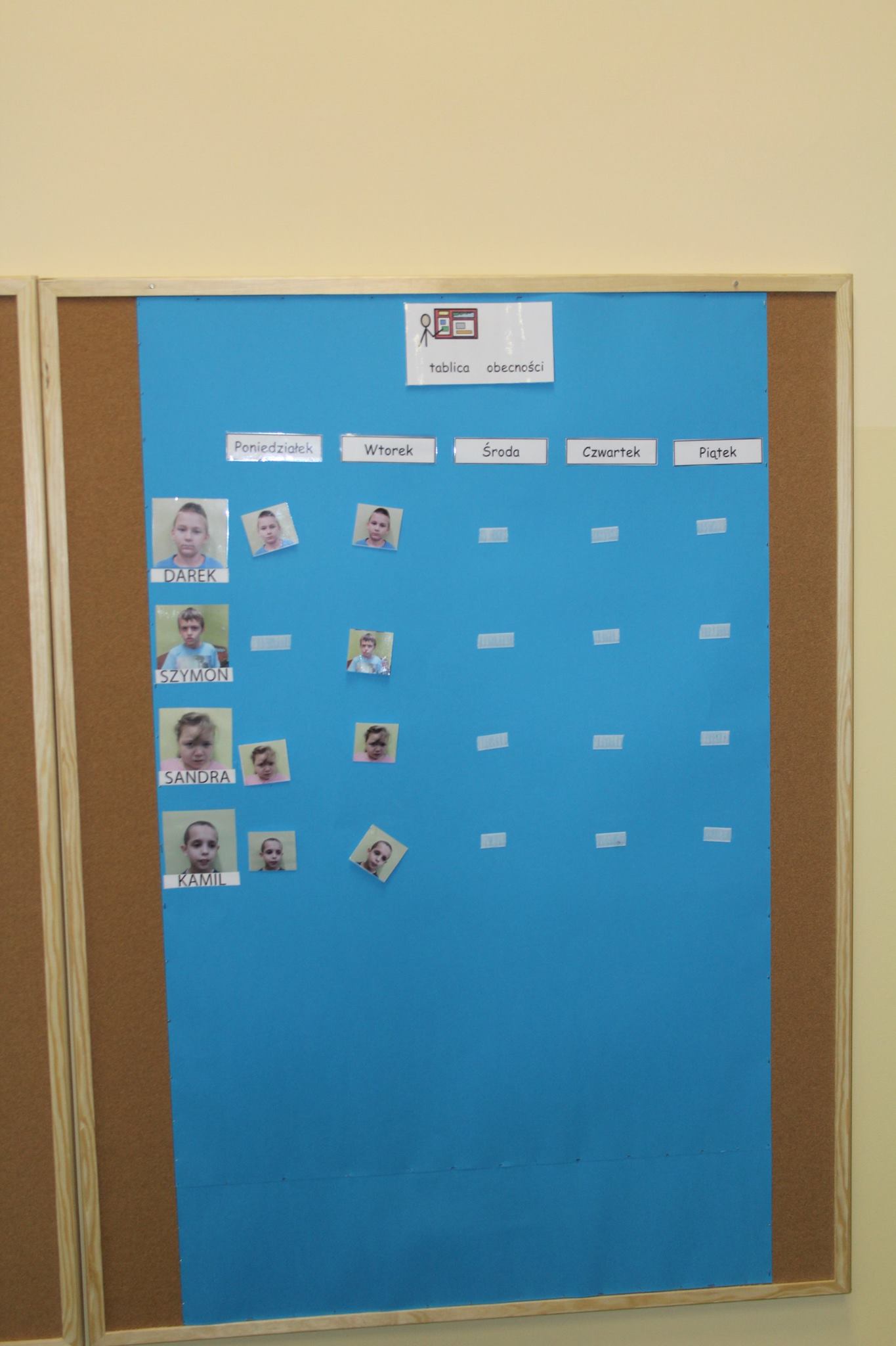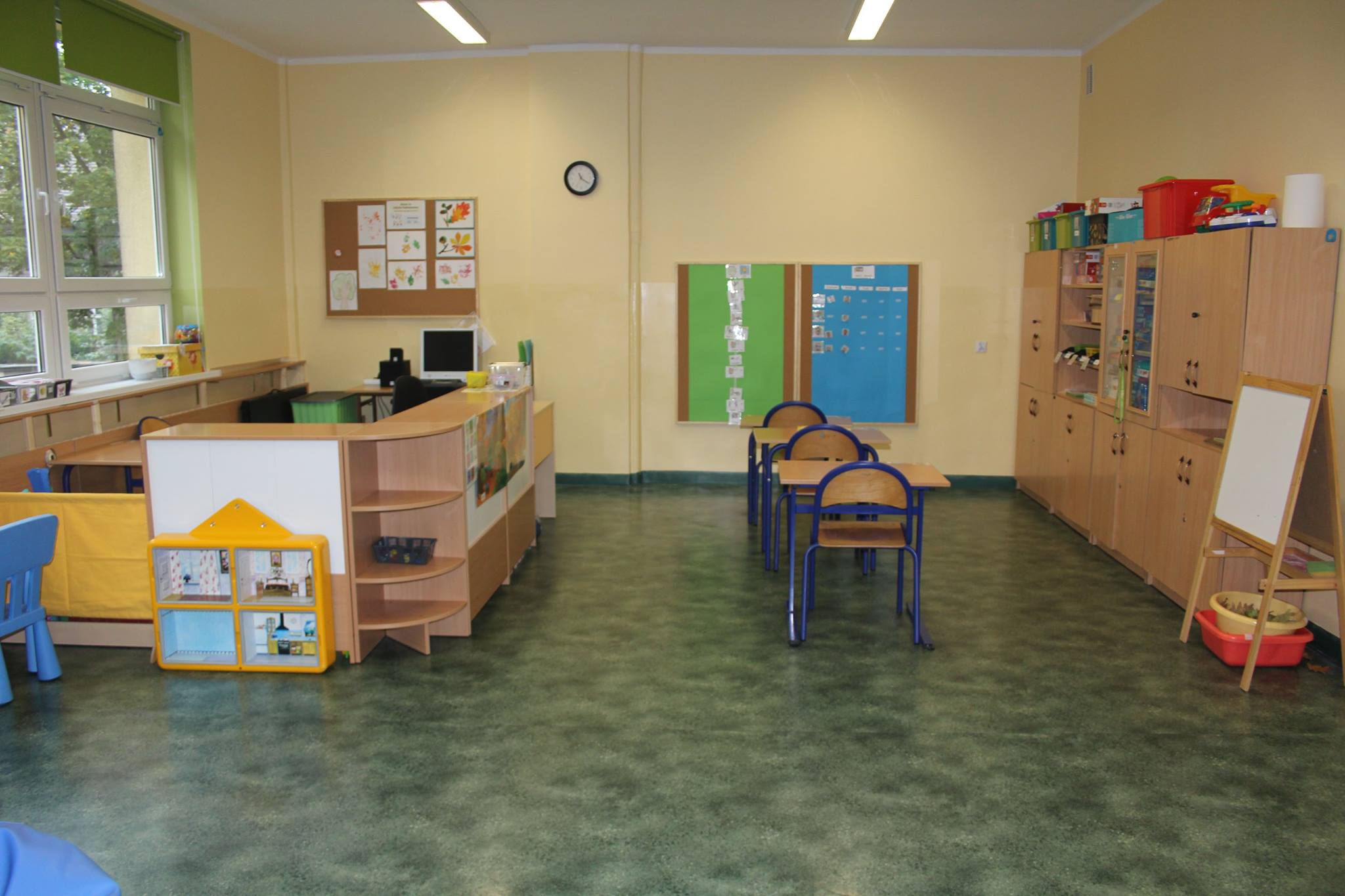 W sali uwzględniono miejsce do pracy grupowej, miejsce do pracy indywidualnej, miejsce do pracy z komputerem, miejsce do wypoczynku oraz miejsce do zabawy. Ściany są w stonowanych barwach- zielonej i kremowej, aby działały uspokajająco na dzieci . Uczniowie pracują według planu dnia stworzonego z wykorzystaniem pecsów. Dla każdego z uczniów przygotowano stolik oznaczony imieniem dziecka i zdjęciem. Pomoce do pracy indywidualnej z uczniami zgromadzone są w specjalnych pojemnikach oznaczonych zdjęciem dziecka.