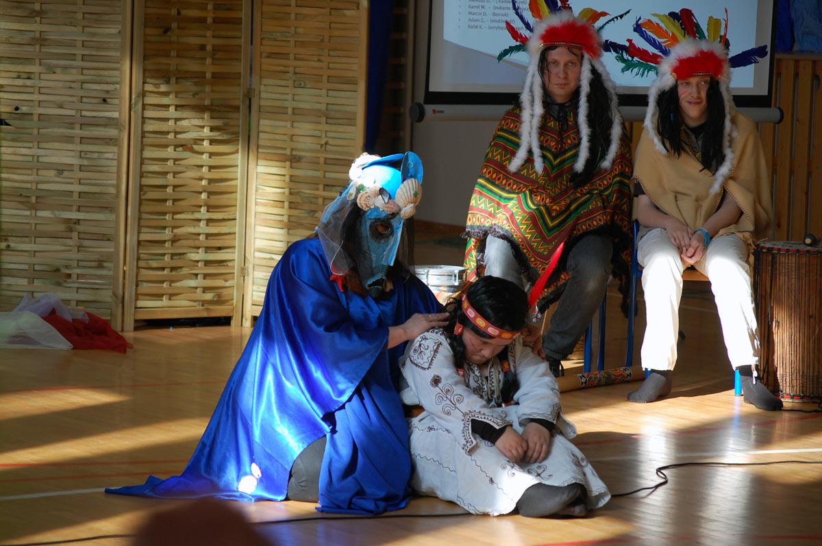 "Kamyczek" to indiańska opowieść, stara legenda, którą postanowili ukazać w nowy sposób terapeuci teatralni naszego szkolnego teatru "Rzepka"". Zaangażowani aktorzy to nasi uczniowie oraz nauczyciele ZSS nr 41 i uczniowie z zaprzyjaźnionego gimnazjum w Gliwicach. Odgrywanie roli jest również terapią. Ogromne brawa dla naszych uczniów, którzy występują przed tak ogromną publicznością bez tremy i skrępowania, chyba każdy z nas zdaje sobie sprawę jak trudne są wystąpienia publiczne.