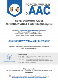 Zespół Szkół Specjalnych nr 41 w Zabrzu włączył się w AkcjakomunikAACja której celem jest: ukazanie relacji terapeutycznej jako interakcji, zwrócenie uwagi na poszanowanie godności osób mających trudności komunikacyjne oraz pokazanie podejść terapeutycznych respektujących prawo każdej osoby do komunikowania się.